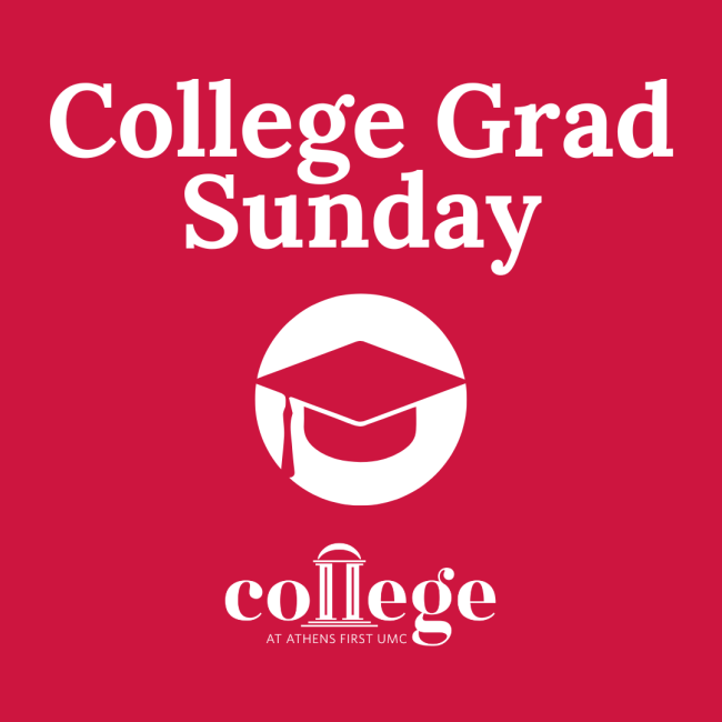 Join us for Graduation Sunday as we celebrate our college graduates during worship at 11:00 a.m. on April 26! Whether you’re graduating from undergraduate or graduate programs, we want to recognize all you have accomplished. We’ll have a special moment of celebration in worship, and we will include your name and graduation information in our bulletin. Family is welcome to join us for this special service and stay for our College & Grad Celebration Lunch. Please register online to ensure you are included in the bulletin and helps us plan for lunch. If you are unable to attend, we still encourage you to register so we can honor and celebrate you!