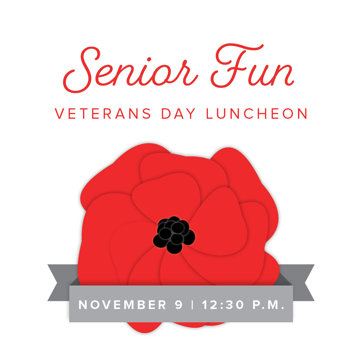 We invite you to join us for our Senior Fun Veterans Day Luncheon on Tuesday, November 9, at 12:30 p.m. in Hancock Hall.